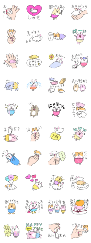 再販。クビレのないムチムチ体型の小動物のスタンプです。年末年始、年賀状、お正月、新年のあいさつ、ナマコうさぎ、子ども、クビレなど存在しない。