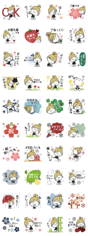 ガーリーテイストな春の日常スタンプです♥まちゃの部屋 より発売