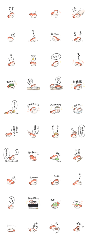 ふわふわちっちゃいおすしのあかちゃんのスタンプ。おてんばちゃんなのでお醤油つけすぎ注意です!SHON より発売