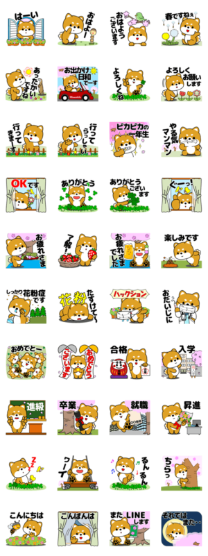 ぽかぽか陽気の春におすすめの豆柴のスタンプです。春のイベントや日常でも使いやすいスタンプです。ヒサケイプリン より発売