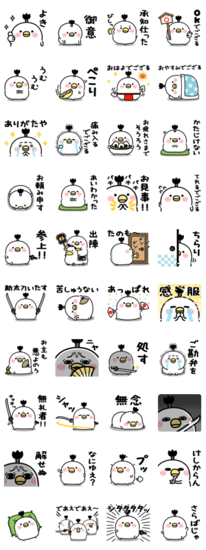 ちびトリのゆるい『侍・武士語』スタンプです。mame&co より発売