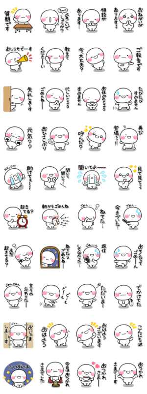 しろまるのトークの始まりにとても使えるスタンプです。メッセージを送る前のスタンプとしても使えますので、スタンプ初心者の方にもオススメです。【作:いしいともこ】