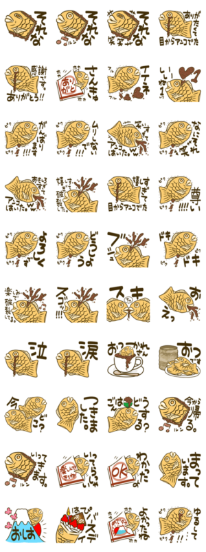 あんこたっぷり、あんこで気持ち伝えるちょっとシュールで面白い鯛焼きのスタンプ。友達や家族など親しい人に送るスタンプ。しゅきしゅき より発売