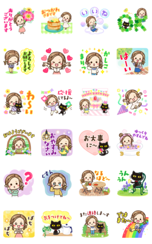 大人気クリエイター「紅おれんじ」の飛び出す大人女子と黒ねこのスタンプが登場♪ほどよく可愛くて使いやすいポップアップです