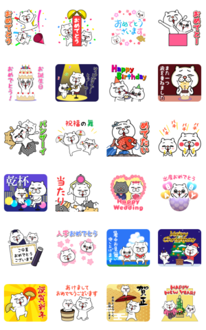 誕生日・結婚・出産・入学・卒業・暑中見舞い・クリスマス・お正月など、ずっと使えるウザ~~い猫のお祝いスタンプ♪