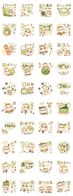 グリーンティーな優しいカラー♡心が澄み渡る毎日スタンプです♪小さな幸せ/感謝あさごぱん より発売