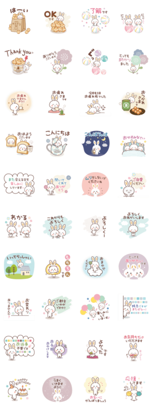 ふんわりとしたうさぎが可愛い♪ 気づかいのあるやさしいイラストのスタンプです。毎日使いやすい丁寧な言葉がいっぱいです。かりん より発売