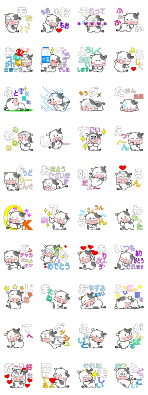 毎日楽しく使える子牛のモーちゃんメガビッグ第2弾の優しいスタンプです。ohausa より発売