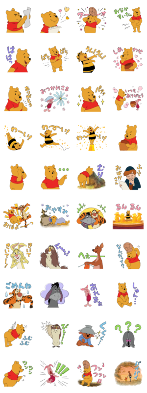 プーさんの言葉がちょっと笑えて可愛いです。いろんな場面で使えそうなスタンプです!
