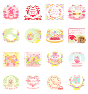 母の日 & 誕生日 カラフルなお花いっぱい スタンプ画像一覧