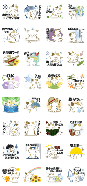 みけさんシリーズの夏テイストスタンプです!お好きな組み合わせでもお使い頂けますよ♪まちゃの部屋 より発売