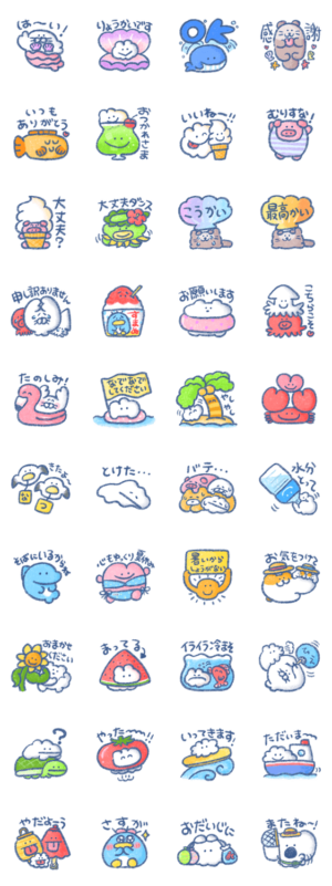 暑いなかおつかれさま!! (ウサギ/アザラシ/ラッコ/ブタ/クリームソーダ/天気/毎日/挨拶)もくもくちゃん より発売