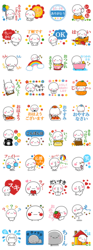 キャラクター「しろまる」のスタンプです。昔ながらのレトロな色彩で作成致しました。無難に使える内容のみ厳選している無難な白キャラです。大人ver【作:いしいともこ】