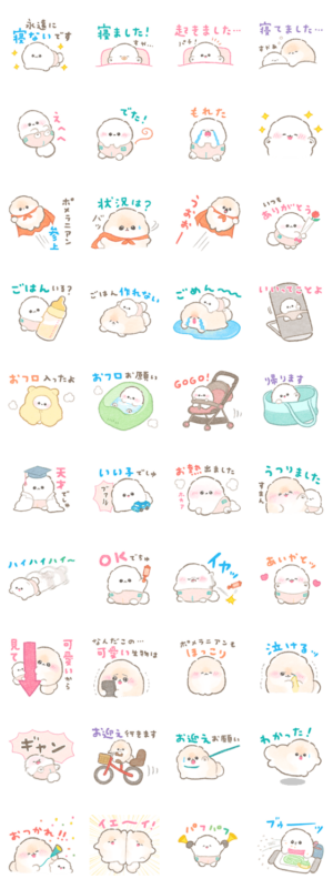 ポメラニアンぽぽちとぱぴちの育児スタンプのダウンロードはこちら↓