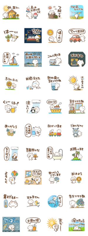 暑い夏の挨拶にピッタリなスタンプ。汗だくになりながらがんばるねこっちです。takopon より発売