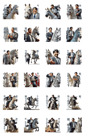 おもしろ/面白い/使いやすい/ギャグ/笑い/ネタ/うざい/爆笑/おじさん/中年/おやじ/王子/馬/白馬/プリンス/イケメン/かっこいい/ダンディ狂気のスタンプ屋さん より発売