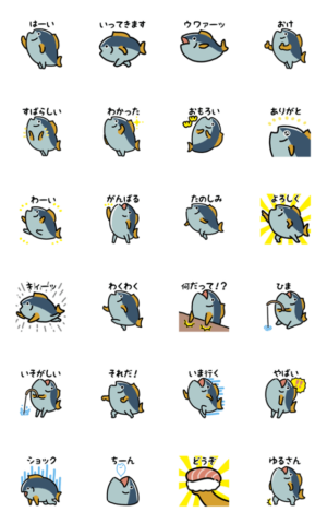 鮪のアニメーションスタンプです。まぐろ/魚/面白い/楽しい/笑顔/シュール/手書き/ゆるい/癒し/ゆるかわ/シンプル/使いやすい