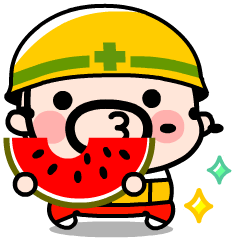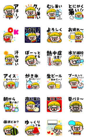 現場おやじ君の可愛い夏スタンプ登場!連日の猛暑でみなさま夏バテ気味だと思いますが、おやじ君の楽しいスタンプで涼んでくださいね〜。