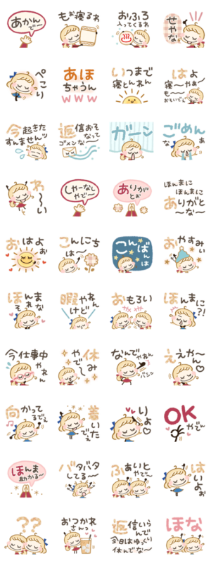 日常で使いやすいフレーズ沢山の関西弁スタンプです♡小さな幸せ/感謝あさごぱん より発売
