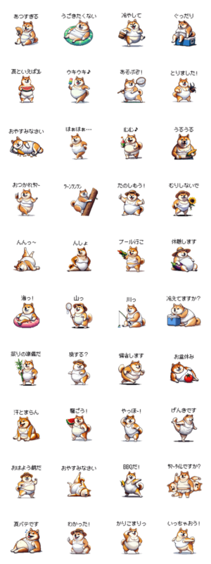 夏休みをたのしむ ふとっちょ柴犬 スタンプ画像一覧