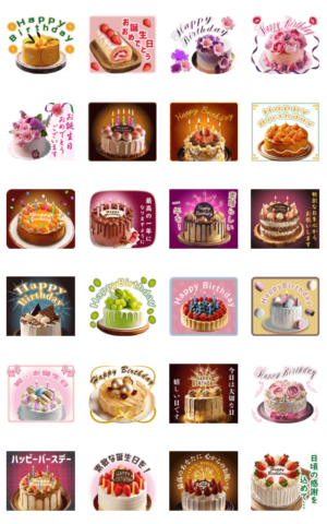 飛び出す!ケーキでハッピーバースデー スタンプ画像一覧