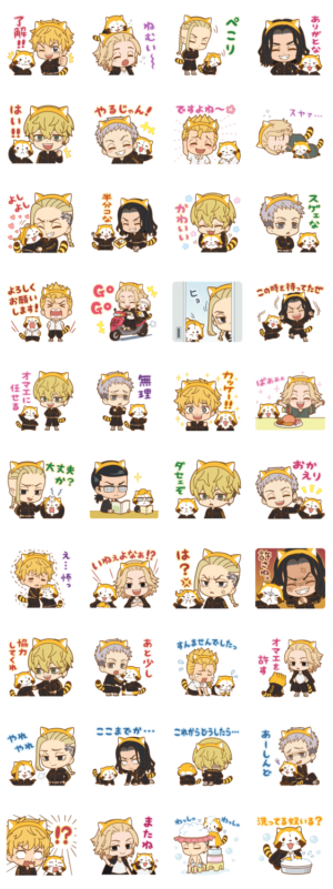 東京リベンジャーズのキャラがラスカルの耳をつけていてみんな可愛いです。たくさん使いたくなります。