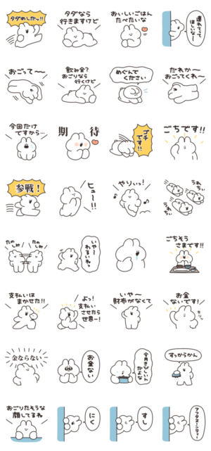 おごられたいうさぎのスタンプです。ナポリ より発売