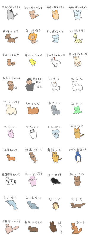 恋人への本音スタンプ どうぶつのダウンロードはこちら↓