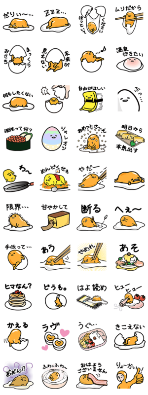 LINE返すのめんどくさい。だるい。どーせ食われるだけだし。 そんな現代人にぴったりな、ぐでたまのスタンプが出ました。愛嬌で許してもらいましょう。