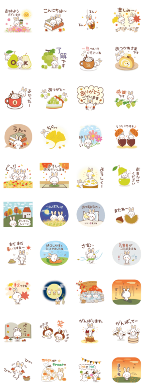ふんわり♡「うさぎ」のやさしい[ 秋を感じる ]スタンプです♪敬語もたくさんあり!かりん より発売