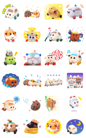 新しい仲間たちが加わって、『PUI PUI モルカー』のボイス付きスタンプが新登場! 本物のモルモットが声を担当したユニークなスタンプです♪