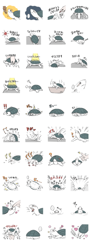 漫画「亀飼い4コマ」の亀のスタンプです。カメユ より発売