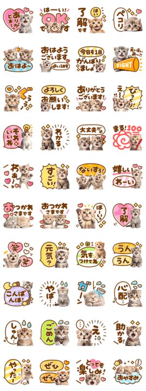 字が大きくて見やすい♪かわいいふきだしいっぱいのねこちゃん達のスタンプです♡猫ぴよたぬき♡ より発売