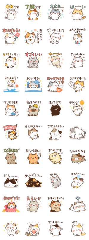 40個全部違う柄の猫たちの、毎日ゆるく使えるスタンプです。Emma より発売
