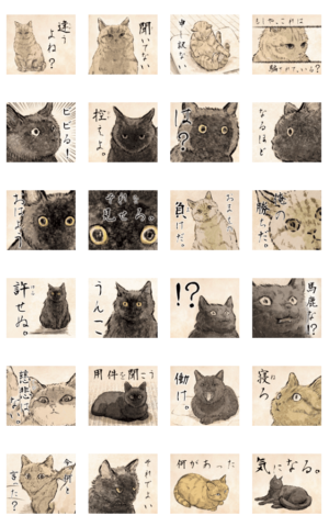 キジネコ様とクロネコ様。 人間に対する圧力が強いスタンプ。Uguisu Utako より発売