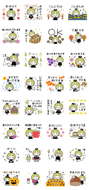 秋のかわいい日常スタンプです。 挨拶/敬語/紅葉ス/イーツ/ハロウィン/誕生日satomi より発売