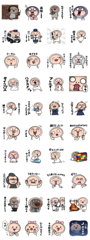 毎日使えばイヤなヤツになりかねないハイリスクなスタンプ。 挨拶/警察/通報/ハラスメント/かわいいnikunohi029 より発売