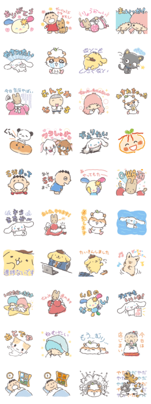 毎日たくさんがんばってるけど、今日はちょっとがんばれなさそう…そんな日があってもだいじょうぶ。ゆるくかわいく、サンリオキャラクターズが伝えてくれるスタンプです。