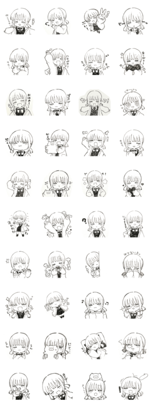 スケブに描いた女の子のゆるめ雰囲気のスタンプです。第二弾!そふら より発売