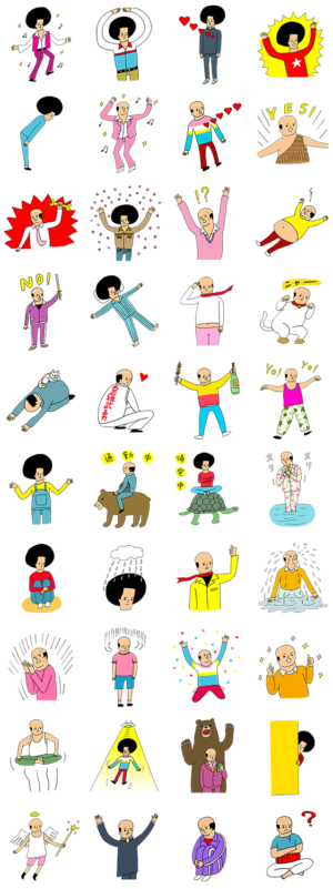 花くまゆうさくの大人気「アフロとハゲ」キャラがLINEスタンプに登場!シュールでキュートなキャラを使って、みんなでトークを盛り上げよう!花くまゆうさく より発売