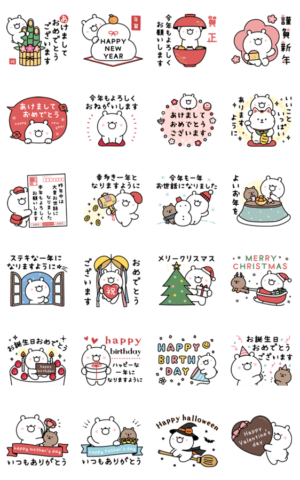 ガーリーくまさんのイベント*お正月/誕生日 スタンプ画像一覧