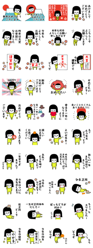 イエローガールのスタンプ/お正月編 スタンプ画像一覧