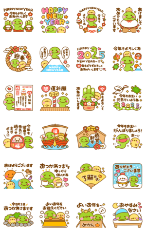 かわいいへびが飛び出して動く♡年末年始・お正月のご挨拶に役立つあけおめポップアップスタンプです。ぴよたぬき♡ より発売