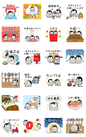 飛び出す!心くばりペンギン 年賀ver. スタンプ画像一覧