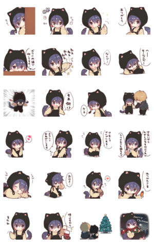 冬にぴったり猫耳ニット帽のあおいくんスタンプです! クリスマスもちょっと入ってますはしもきくり より発売