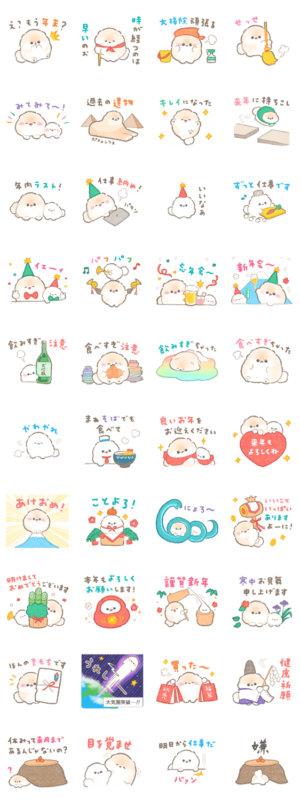 ポメラニアンのぽぽちとぱぴちの楽しい年末年始のスタンプです。仲のいいお友達とのコミュニケーションや、目上の人に送る丁寧なスタンプもあります!