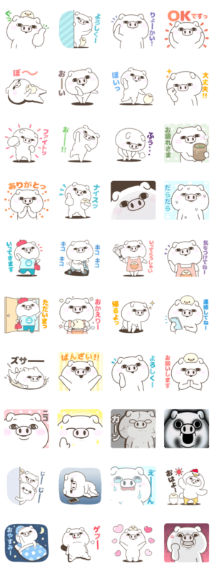 かわいいぶたさんの家族で使いやすいスタンプです。ヨッシースタンプ より発売