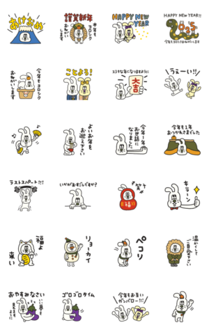 ▶動く!Mr.Bunny のあけおめスタンプ スタンプ画像一覧