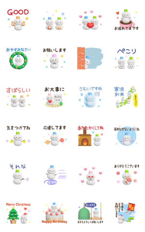 ぷっくり雪だるまさんの冬のご挨拶。クリスマスや年末年始も使えるアニメーションスタンプ。レムリン より発売