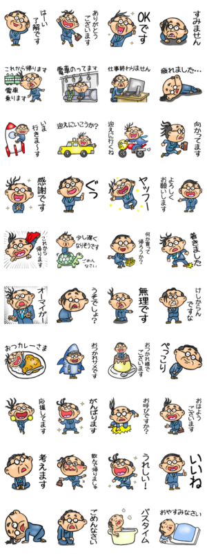 昭和生まれのお父さんのスタンプです。家族思いの優しいおとん。髪の毛を振り乱して毎日仕事もがんばってます。Brody Machine より発売